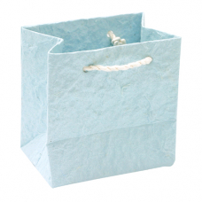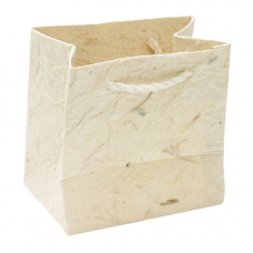 Descrição: caixa expositora branca, com 24 saquinhos de papel artesanal em 4 cores sortidas e asa em cordão de algodão